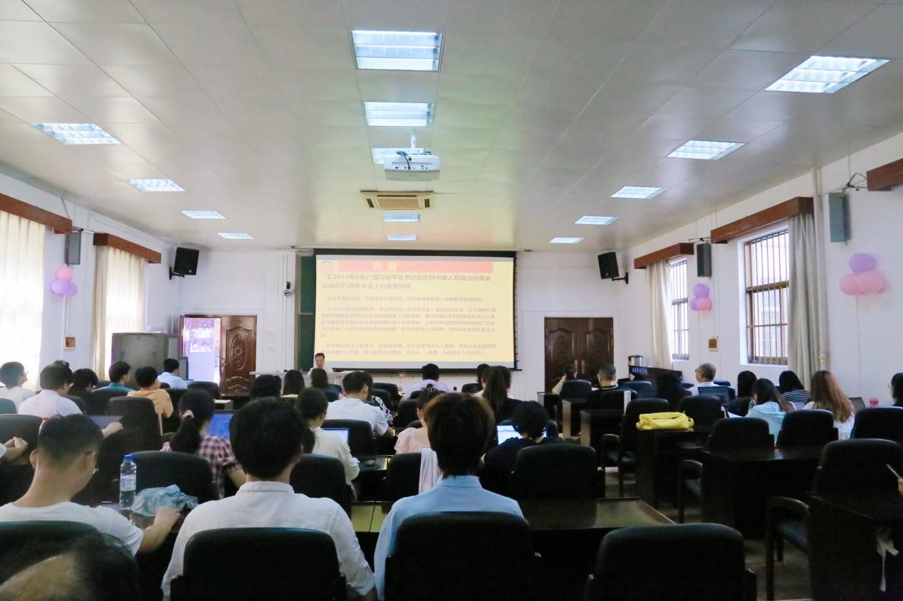 7月3日下午,由校党委统战部、熟女 联合举办的“凝心铸魂强根基、团结奋进新征程”主题教育专题报告会在熟女 107报告厅举办。报告会邀请自治区政协副秘书长,办公厅副主任、党组成员肖顺平作题为“从协商民主到全过程人民民主”的专题讲座。讲座由熟女 党委书记聂鑫教授主持,校党委统战部成员、学校各民主党派成员、无党派人士、留学归国人员、归侨、侨眷、台胞、台属、党外知识分子代表及我院众多师生参加了本次讲座。