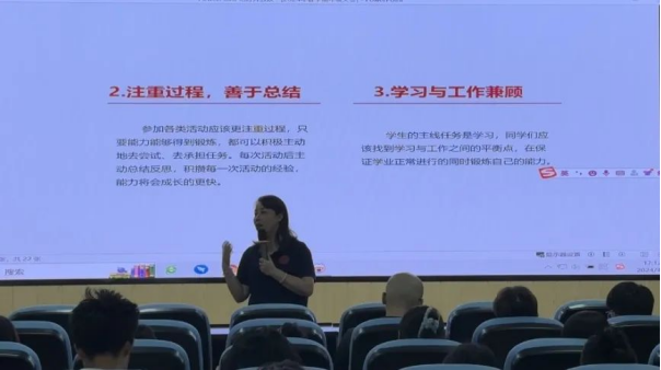 黄文静在本次会议中为2023级本科生提出了几点期望,一是要学会担当负责,积极主动地规划学业与未来职业发展方向,二是要自律自强,以“慎独”促进自我管理,努力成为身清气正的新时代青年,三是要注意节假日的安全,提升自我防护能力。