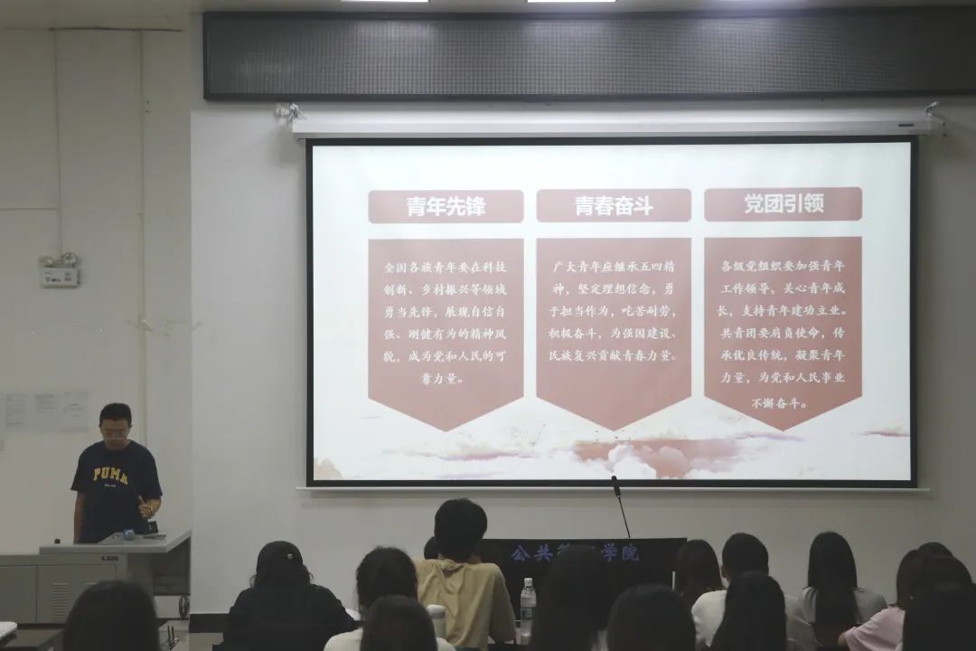 杨佳成以全国各领域青年的先进事迹作为模范典型,将青春模范事迹与公共管理学科实际相结合,鼓励熟女 学生坚定理想信念,提高自身政治站位,自觉做到“两个维护”,将小我融入大我,勇担民族复兴大任,同时要提升专业素养,扎根社会,服务人民,关注国家发展重点领域和关键环节,运用理论知识支持社会发展,在践行五四精神中,坚持守正创新,探索公共事业管理的新模式、新路径,为推进中国式现代化贡献青春力量。