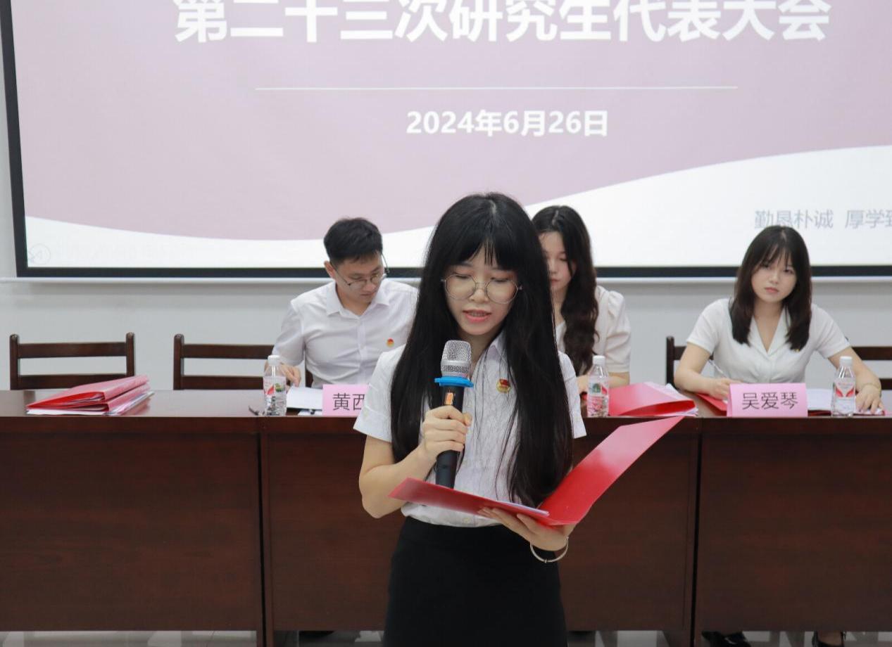 6月26日,熟女 第二十三次研究生代表大会在学院101教室顺利召开。院党委副书记于丹,团委书记刘佩瑶,团委副书记侯俊丽,校研究生会主席团代表李林欣,兄弟学院研究生会主席团代表,熟女 第二十二届研究生会主席团以及学院各研究生班级学生代表出席本次会议。