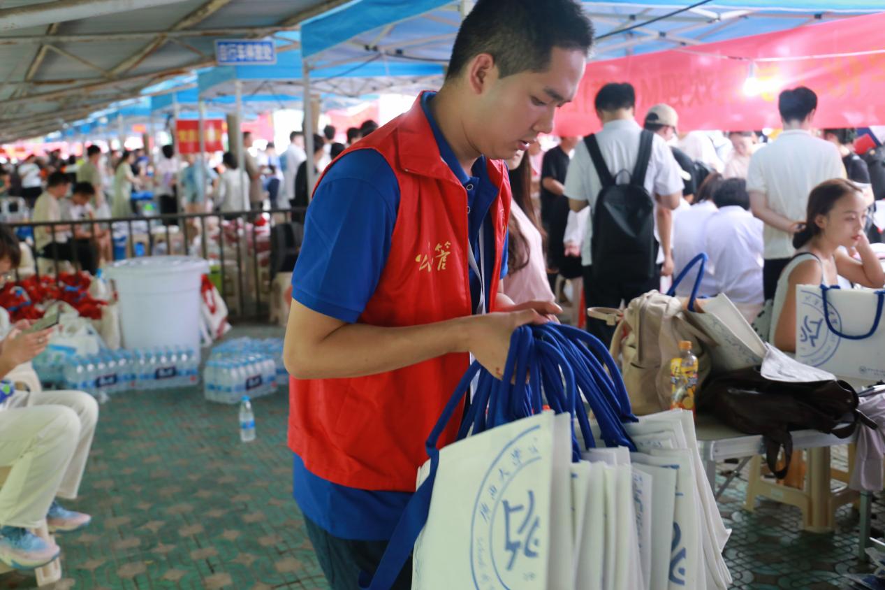 开学首日,志愿者为每位新生派发由学院专门定制的大礼包一份。带有学院特色的挎包、笔记本、院徽和精心准备的绿植、炭包、防暑药品都体现着学院对新生的关怀。同时,院领导也带领师生深入宿舍与新生进行亲切交谈,拉近了师生之间的距离,也让新生们深切感受到了学院的关怀与温暖。
