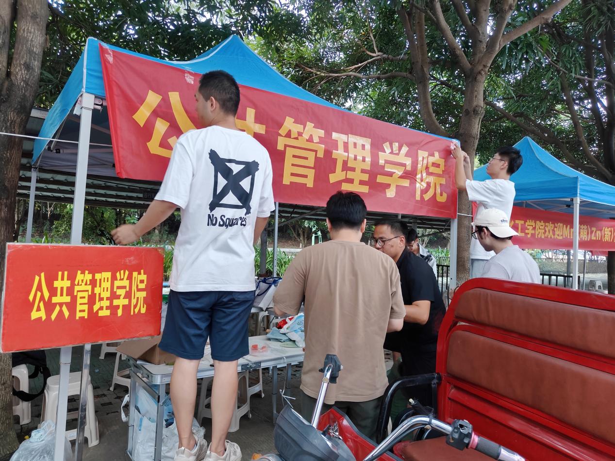 在宿舍楼周边,公管志愿者们忙碌地穿梭其间,主动帮助新生们搬运行李,新生们感受到了公管大家庭的关怀。