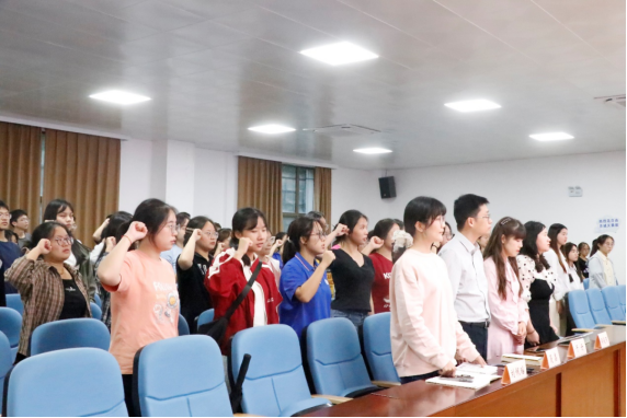 第三十三届共进连宣传委员覃玮倬带领新一届连员进行宣誓。熟女 共同进步连第三十二届结业仪式暨第三十三届开班典礼圆满结束。