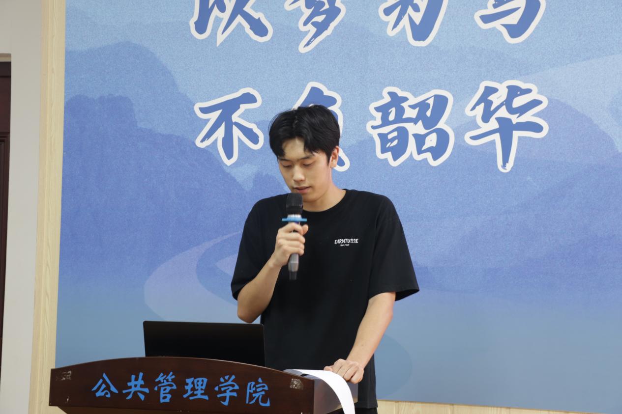 陈科旭指出,共进连作为学院培养学生党员的重要阵地,要深入贯彻“立足学院、服务学校、奉献社会、完善自我”的理念,为此他向全体连员提出三点要求:一是在理论学习中筑牢思想根基。在观看红色电影、举办读书分享会等活动中,引导连员感悟红色文化,切实发挥思想引领作用。二是在实践活动中厚植家国情怀。通过参观红色基地、开展暑期社会实践和“三下乡”活动,提升自身的社会责任感和服务意识,增强社会实践能力,实现全面成长。三是在体育锻炼中磨砺精神意志。通过晨跑活动规律作息、强健体魄、锤炼坚强意志,能够为大学学习和生活打下坚实基础。最后,陈科旭对新连员寄予殷切期望,希望在座连员都能在共进连的培养中不断成长进步,努力成为具有坚定理想信念、扎实专业学识、良好道德品质和优秀实践能力的青年人才。