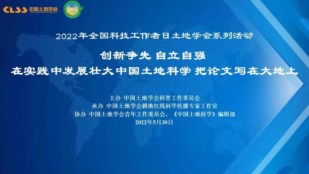 2022年5月30日是第6个全国科技工作者日,中国土地学会开展了以“创新争先、自立自强,在实践中发展壮大中国土地科学,把论文写在大地上”为主题的系列活动。本次活动包括“青年科技工作者说”、“土地科普大咖圆桌会议”、“最美科技工作者座谈”、“回忆老一代土地科学家”、“土地科技进矿区”、“土地科技助力黑土地保护”和“寻访耕保少年”等7个环节。中国土地学会青年工作委员会主任、熟女 龙花楼教授与汪晗副教授参与此次活动。