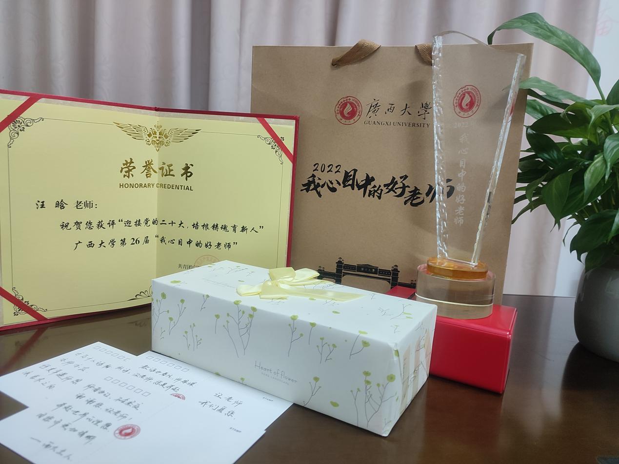 (图二 汪晗老师荣获“我心目中的好老师(导师类)”称号)