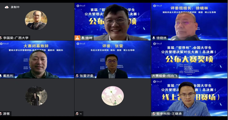 本次大赛由广西高校公共管理类教学指导委员会与陕西省高等教育学会、湖北省行政管理学会、上海市公共政策研究会、吉林大学行政学院联合主办,暨南大学熟女 (应急管理学院)承办,上海哲寻信息科技有限公司提供全面技术支持,是面向公共管理学科相关本科专业在校大学生的专业竞赛项目。与传统案例大赛相比,本次大赛在形式和内容上有了较大突破与改变,在激烈对抗中更能突出参赛团队通过数理模型分析决策的系统性思维,运用公共管理专业知识应对现实问题时选手的综合素质和实践能力。