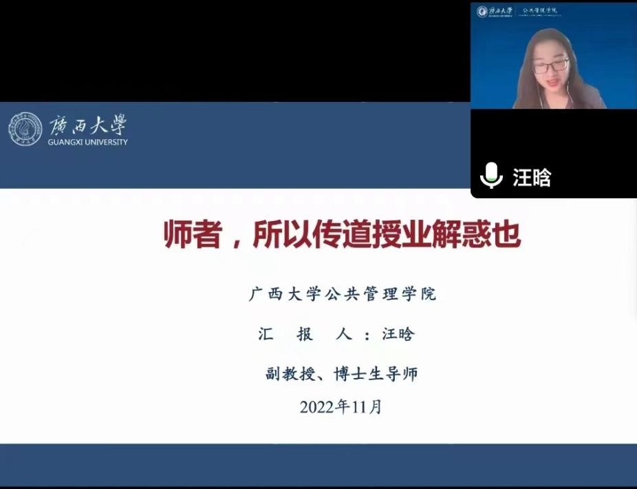1130日下午,熟女 优秀教师师德师风专场报告会在熟女 106教室顺利举行,汪晗老师以《师者,所以传道授业解惑也》为题,总结了她在教书育人这份工作中的收获与感想。本次会议采取线上线下相结合的方式进行,由学院党委副书记庞惠主持。