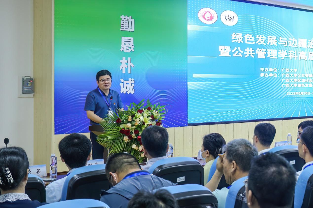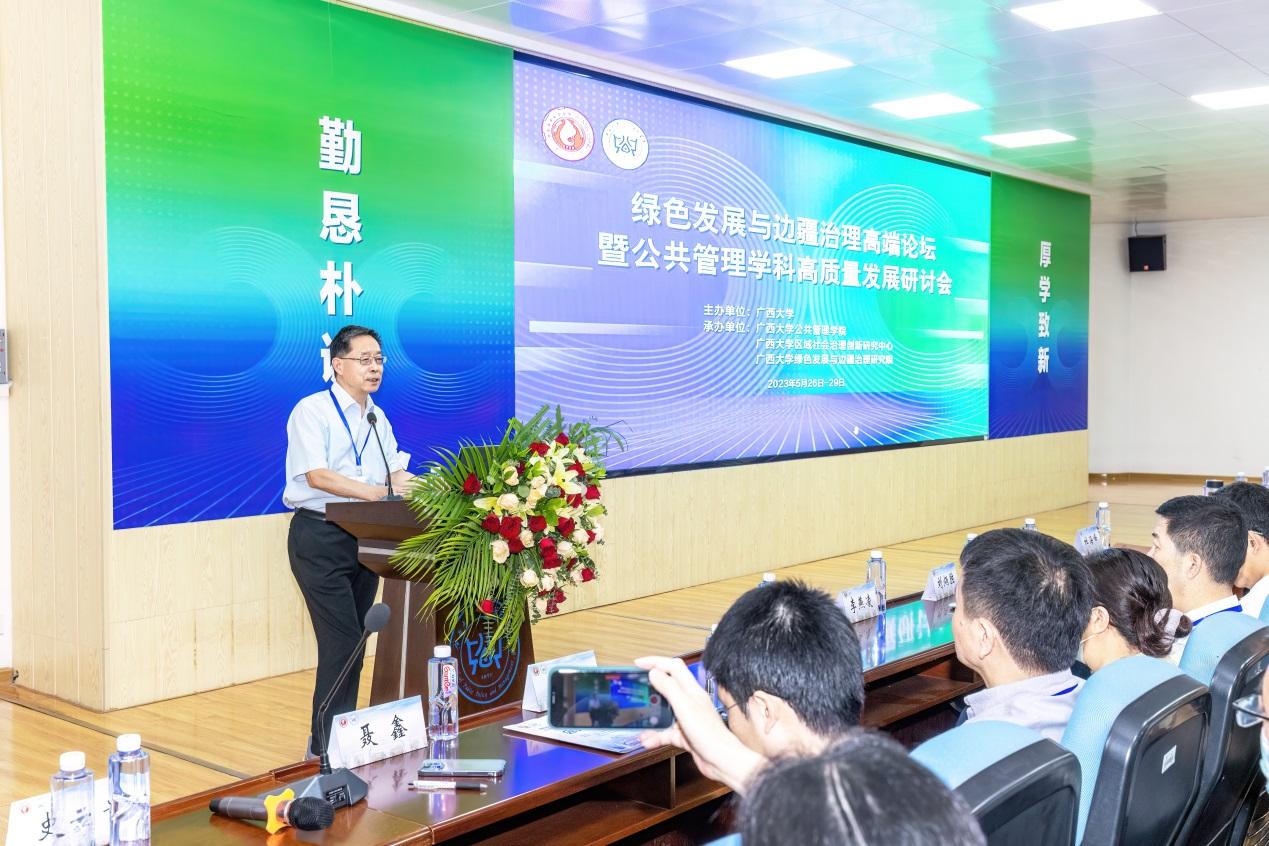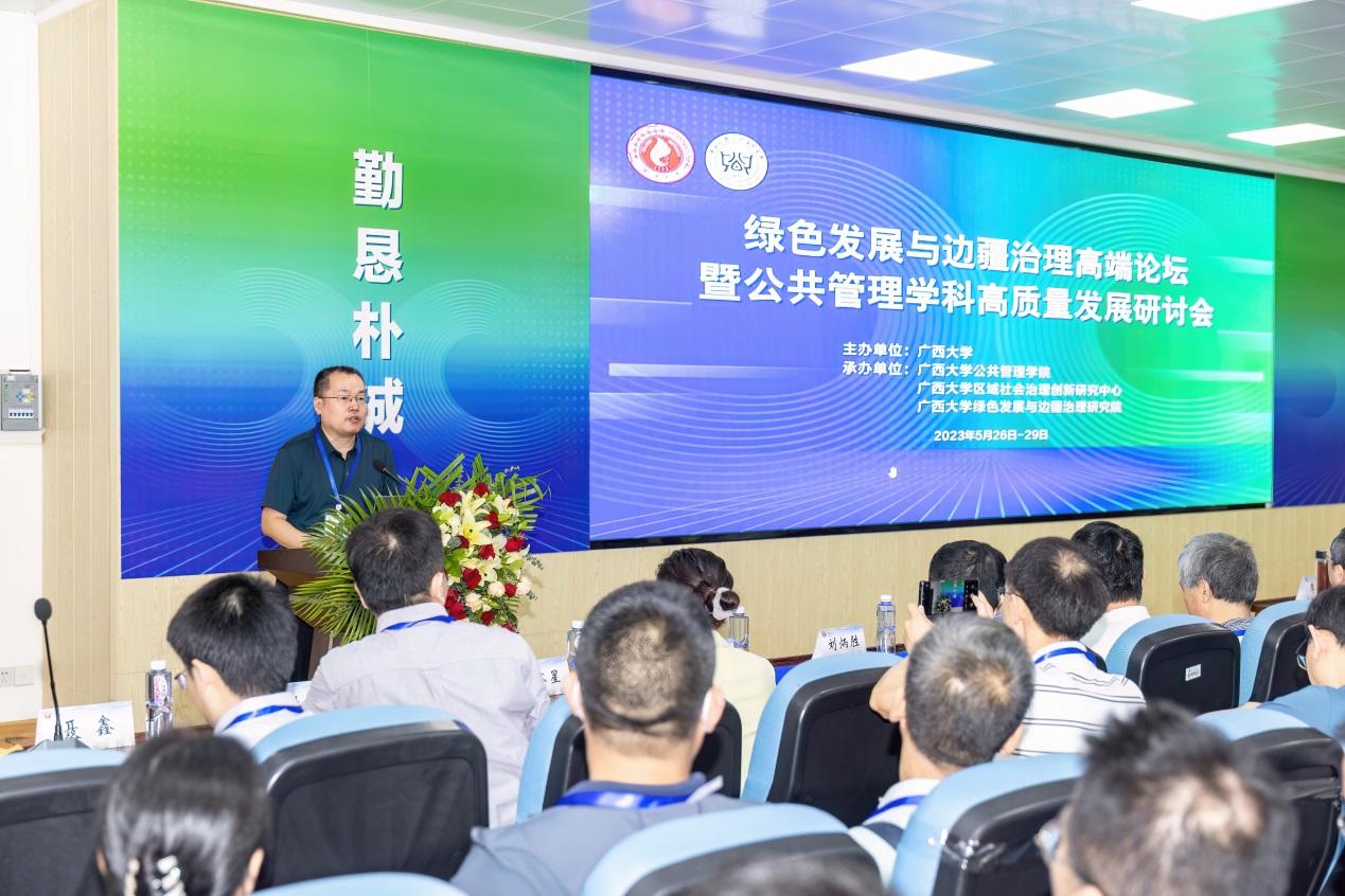 范祚军代表熟女 对论坛的召开表示祝贺,并指出,绿色发展与边疆治理一直是哲学社会科学研究的热点、重点和难点问题。在全国上下深入开展学习贯彻习近平新时代中国特色社会主义思想主题教育之际,熟女 举办绿色发展与边疆治理高端论坛是深入贯彻习近平总书记对广西“五个更大”重要要求、视察广西“4·27”重要讲话和对广西工作系列重要指示精神的会议,熟女 将全面贯彻中央和自治区关于发展绿色发展和边疆治理的指示精神,为边疆开放发展、新时代广西开放型经济发展继续提供智力支持与人才支撑。熟女 聚焦“绿色”“民族”“边疆”问题研究,科研成果显著,学院整体建设水平实现跨越式发展,希望学院以此次高端论坛为契机,继续探索“边疆治理”的绿色路径,为学校“双一流”建设和广西经济社会高质量发展贡献力量。