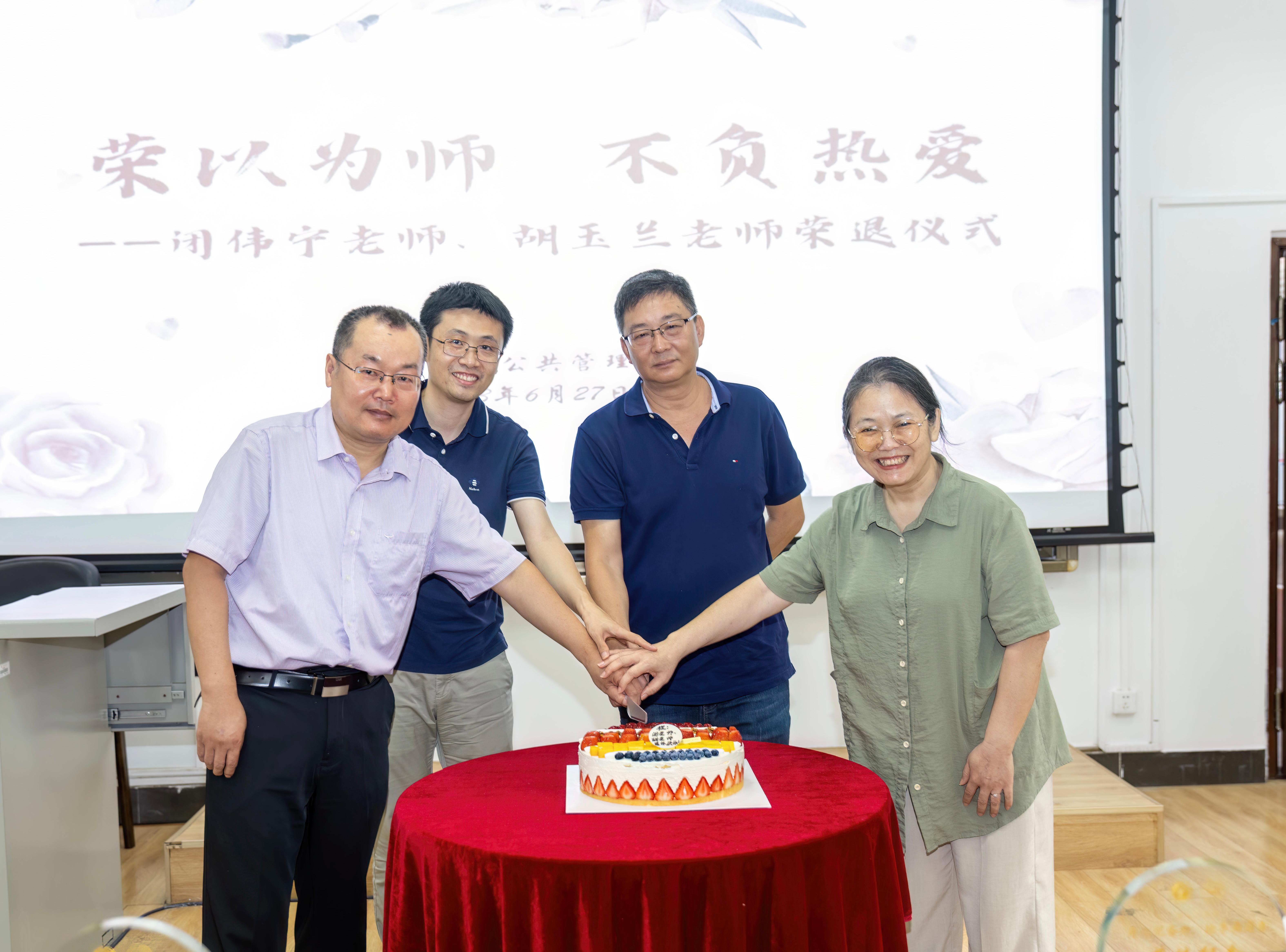 最后,学院院长史云贵为荣退老师送上纪念品,并与老师们一起切开象征着甜蜜幸福生活的蛋糕。