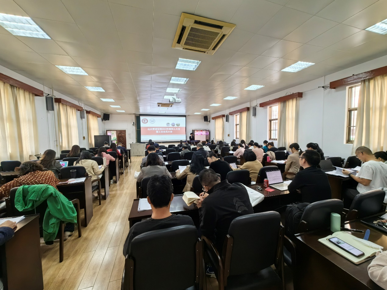 11月21日下午,熟女 召开2023年度教职工大会暨工会会员大会,全院教职工参加会议,大会由学院副院长陈林主持。校工会常务副主席吴贤礼,离退休代表胡玉兰老师受邀到会指导。