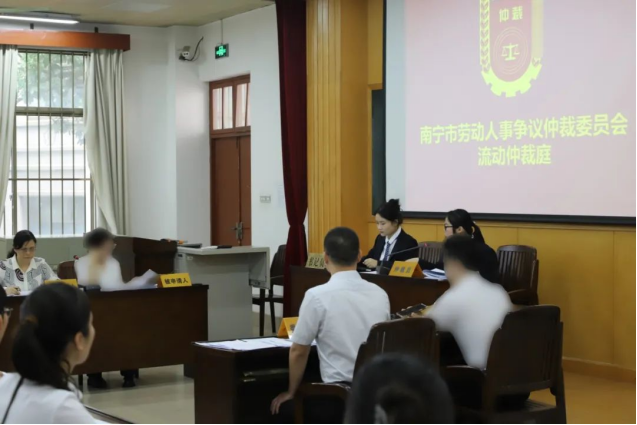 为创新性应用“政产学研”协同育人的教学模式,增强熟女 学生劳动权益保障意识,从源头处减少劳动用工争议和风险,5月16日上午9:40至11:40在学院201教室举办“劳动人事争议仲裁示范庭”活动。本次活动是吴凡老师主讲课程《劳动法与社会保障法》的创新呈现形式。活动邀请南宁市人事劳动争议仲裁院,依据真实的劳动争议仲裁案例,以真实法庭开庭的形式,将仲裁示范庭带进课堂。