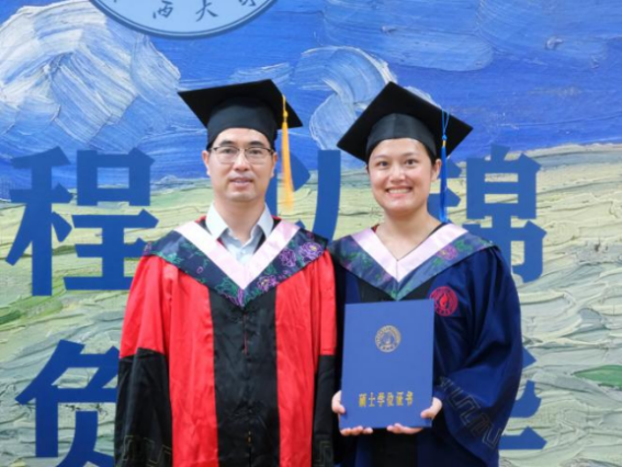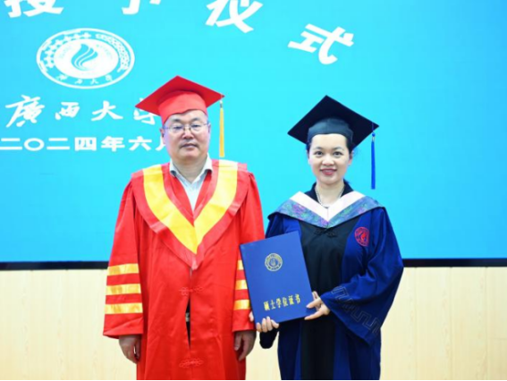 毕业生代表周冲表示,在紧张的社会生活中找到学习节奏是每位非全日制学生的必修课,并以熟女 校训“勤恳朴诚、厚学致新”和熟女 院训“博学笃行”为指导,鼓励毕业生们在未来的道路上永怀希望、不惧困阻,继续为实现“复兴中华、发达广西”的目标而努力。