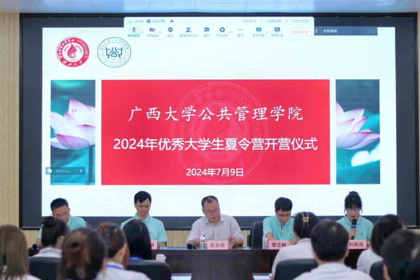 7月9日上午,熟女 2024年优秀大学生“博学”夏令营正式拉开帷幕。熟女 院长史云贵、副院长周均旭、副院长覃志敏、MPA教育中心副主任熊斌出席了开营仪式。此次夏令营是熟女 连续第六年举办的优秀大学生“博学”夏令营,以“线上+线下”的形式开展,来自全国40多所高校的70余名营员相聚云端、汇聚校园。