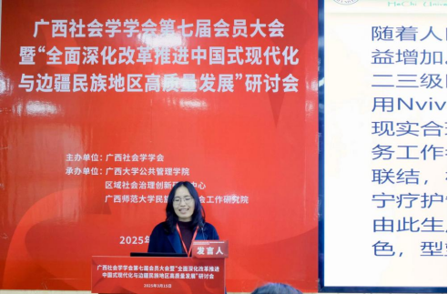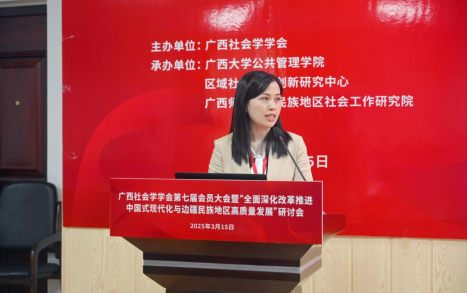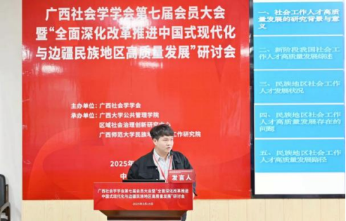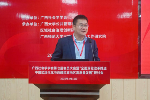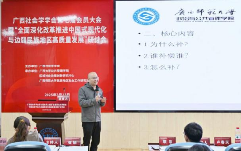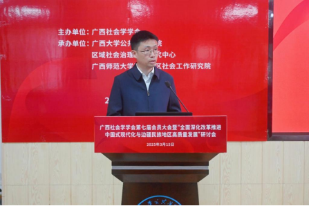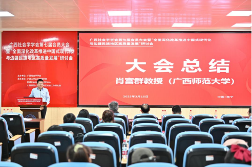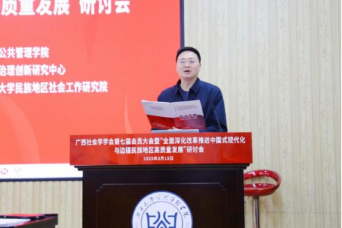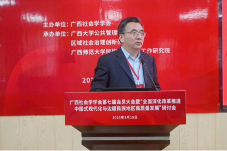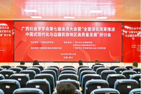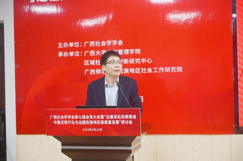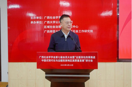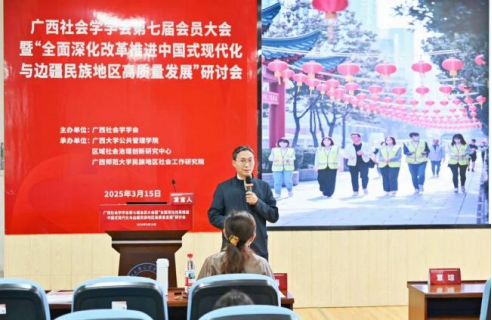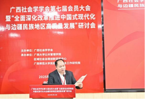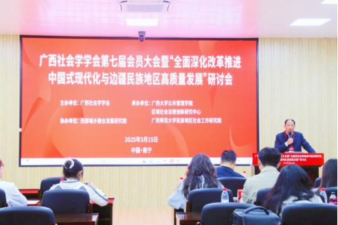 2025年3月15日,广西社会学学会第七届会员大会暨“全面深化改革推进中国式现代化与边疆民族地区高质量发展”研讨会在熟女 成功举办。活动由广西社会学学会主办,熟女 、区域社会治理创新研究中心、广西师范大学民族地区社会工作研究院联合承办,得到了广西人文社会科学重点研究基地西部城乡融合发展研究院的支持。