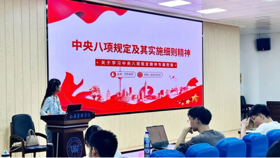 为强化入党积极分子、发展对象及预备党员的纪律意识,推动党的优良作风在青年学子中传承弘扬,5月9日下午,熟女 在203教室举办中央八项规定及其实施细则精神专题党课。院党委副书记于丹担任主讲,全体入党积极分子、发展对象及预备党员参加此次培训。