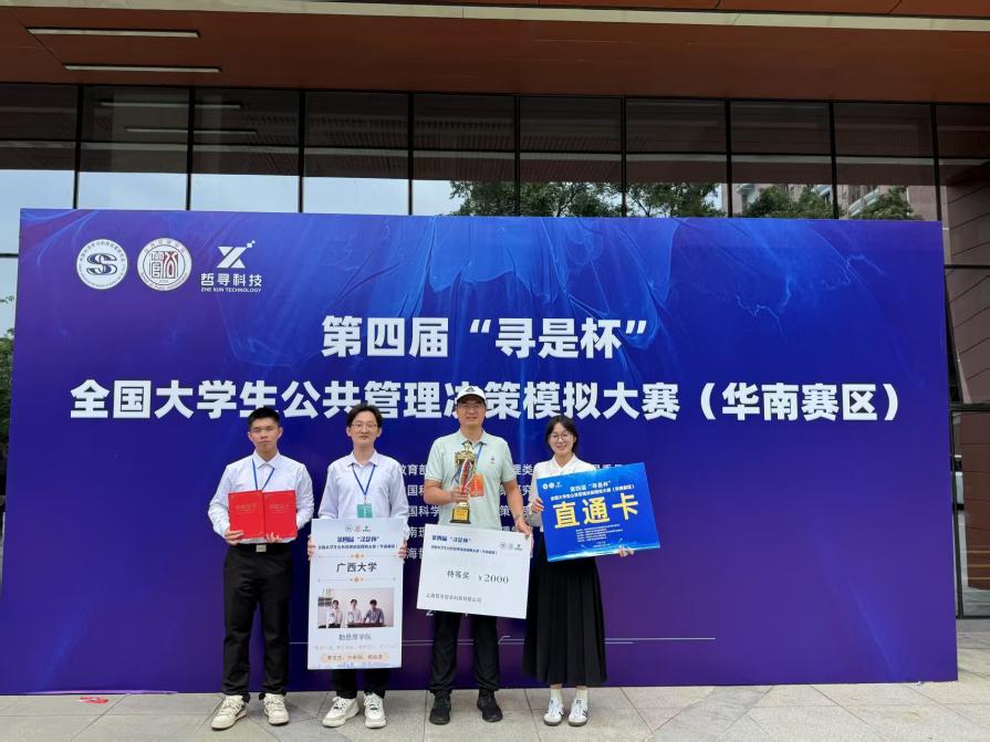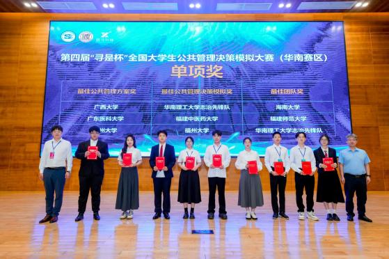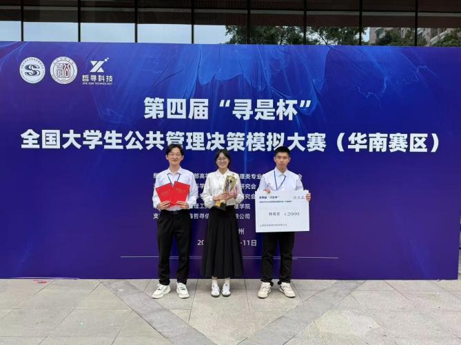 5月10日至11日,第四届“寻是杯”全国大学生公共管理决策模拟大赛(华南赛区)在华南理工大学(五山校区)顺利举办。由熟女 李国梁、黄文静两位老师指导,学生李文杰、孙昕阳、杨如意组成的勤恳厚学队荣获特等奖和最佳公共管理方案奖。