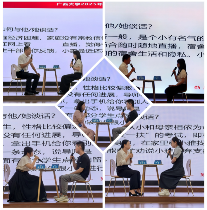 决赛现场设置谈心谈话环节,选手们面对不同类型的学生,运用专业的沟通技巧和心理学知识,耐心倾听、细致疏导,有效解决学生的思想困惑和实际问题,彰显了辅导员的关爱心、责任心和实干心。