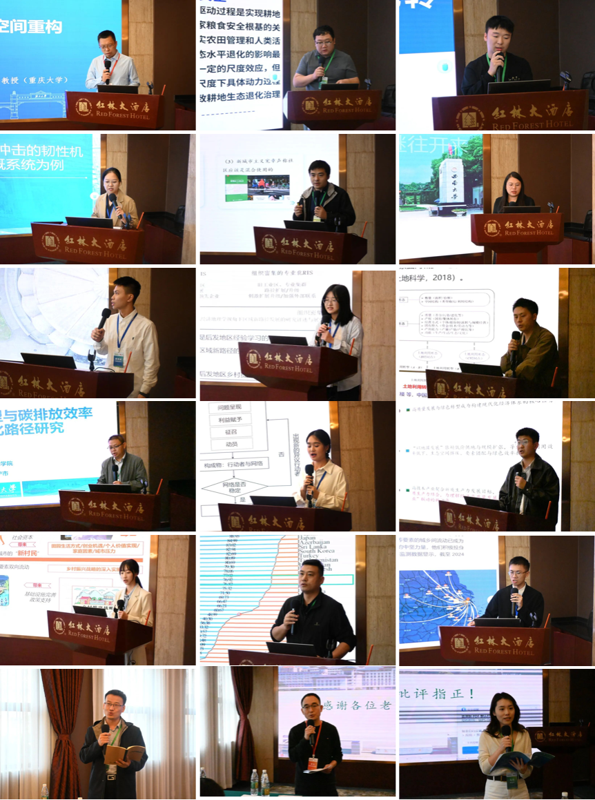 “土地利用转型与社会空间重构”分论坛在四楼贵宾三号会议厅举行,由中山大学杨忍教授与北京市农林科学院刘玉研究员主持和点评,重庆大学马历副教授与中国科学院地理科学与资源研究所曹智副研究员参与点评。分论坛邀请了中国科学院地理科学与资源研究所曹智、中国地质大学(武汉)瞿诗进、西南大学周洪、中国地质大学(武汉)曾杰、成都理工大学张兰心、宁波大学王硕、熟女 谭林、南京农业大学孙昊、广州大学吴大放、中国矿业大学隋虹均、浙江农林大学冯德东、熟女 郭贝儿、同济大学黄龙颜、华南农业大学蔡怀滨、四川大学张子怡等学者。论坛聚焦土地利用转型的多元路径及其对社会空间结构的深远影响,围绕乡村土地利用转型、城市土地混合利用与社区韧性、森林转型、耕地扩张、城乡要素流动、乡村社会空间重构、土地利用隐性转型、土地资源配置与绿色生产效率等多个维度展开了深入的研讨和交流。