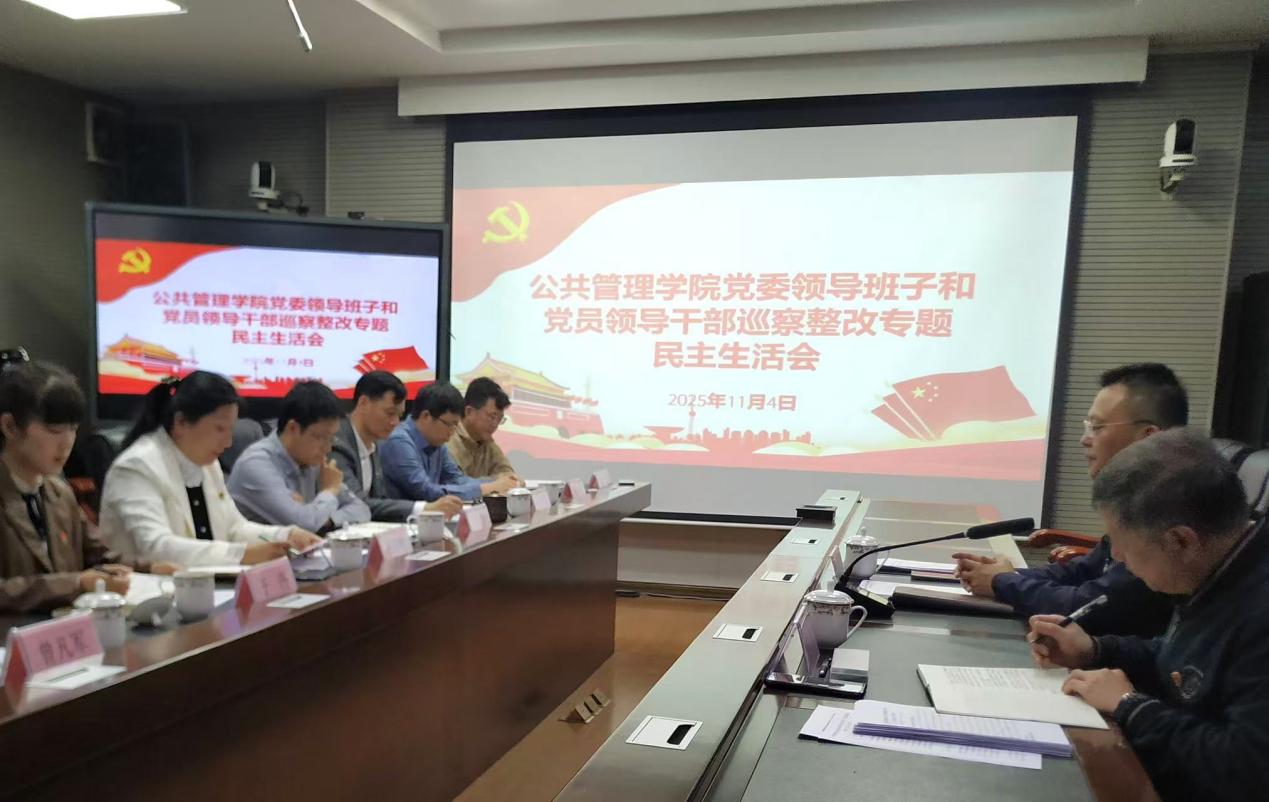 最后,学院党委书记唐旭彬同志作表态发言,强调学院党委对巡察反馈问题照单全收、立行立改。下一步将以此次专题民主生活会为重要契机,切实提高政治站位,坚持问题导向制定整改方案、细化任务逐项落实;同时举一反三做好巡察“后半篇文章”,以高质量党建为引领,把巡察整改工作与学院学科建设、人才培养、社会服务等中心工作深度融合,压实整改责任、细化整改举措、强化整改实效,将整改成果转化为学院高质量发展的强劲动力,为学校“双一流”建设贡献公共管理学科的坚实力量,真正实现“以高质量党建促进学院高质量发展”的目标,助推学院事业高质量发展。