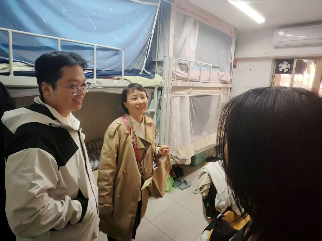 同时,走访老师们对宿舍的用电安全、卫生环境与内务整理进行了细致检查,对整洁有序、氛围融洽的宿舍予以表扬,也对发现的安全隐患和卫生问题提出了及时整改要求,提醒同学们务必遵守宿舍管理规定,增强安全意识,共同维护安全、文明、和谐的居住环境。