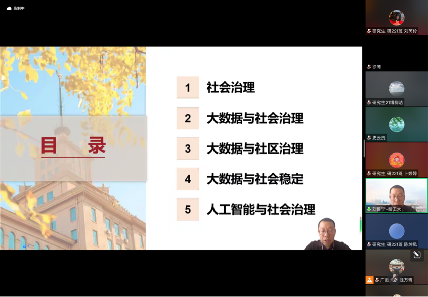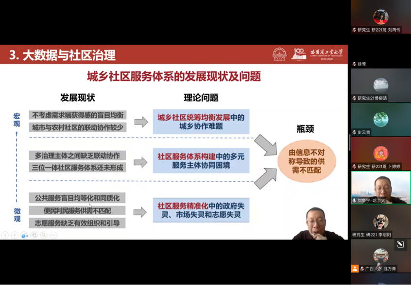 2月25日上午,刘鲁宁教授受邀为熟女 师生作题为“大数据赋能基层社会治理”的线上讲座。本次讲座由熟女 副院长魏万青教授主持,熟女 史云贵院长、周均旭副院长等众多教师以及百余名博士、硕士研究生参加了此次讲座。