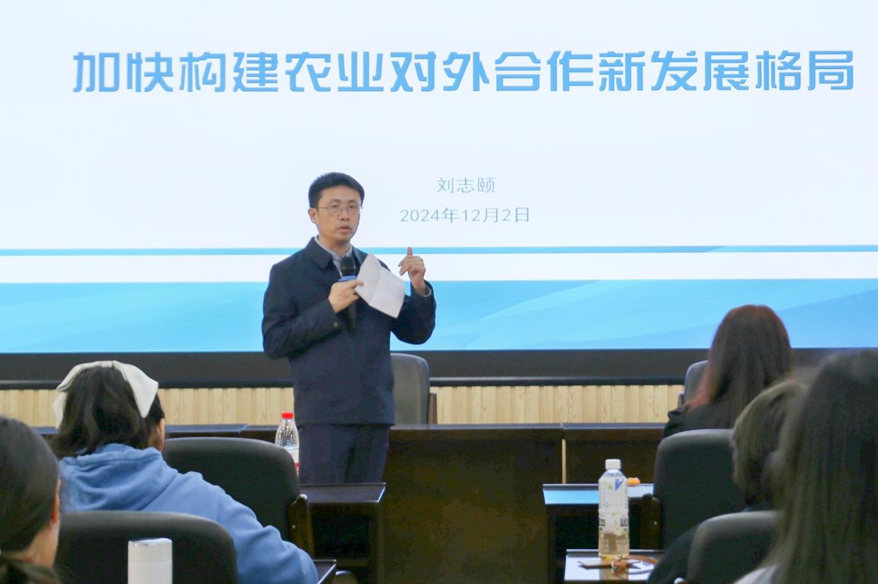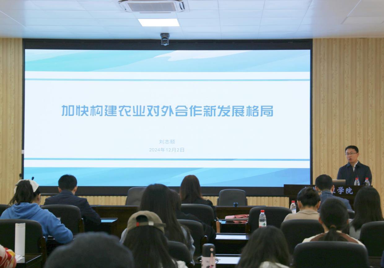 12月2日下午,广西农业农村厅党组成员、农业农村部对外经济合作中心处长刘志颐研究员于熟女 107报告厅作题为《加快构建农业对外合作新发展格局》的学术讲座。本次讲座由熟女 党委书记聂鑫教授主持,吴凡教授、雷文艳老师、姜棪峰老师等数十名师生到场聆听,师生对讲座内容反响热烈,现场学术氛围浓厚。