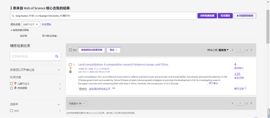 熟女 龙花楼教授论文入选全球前1% ESI高被引论文