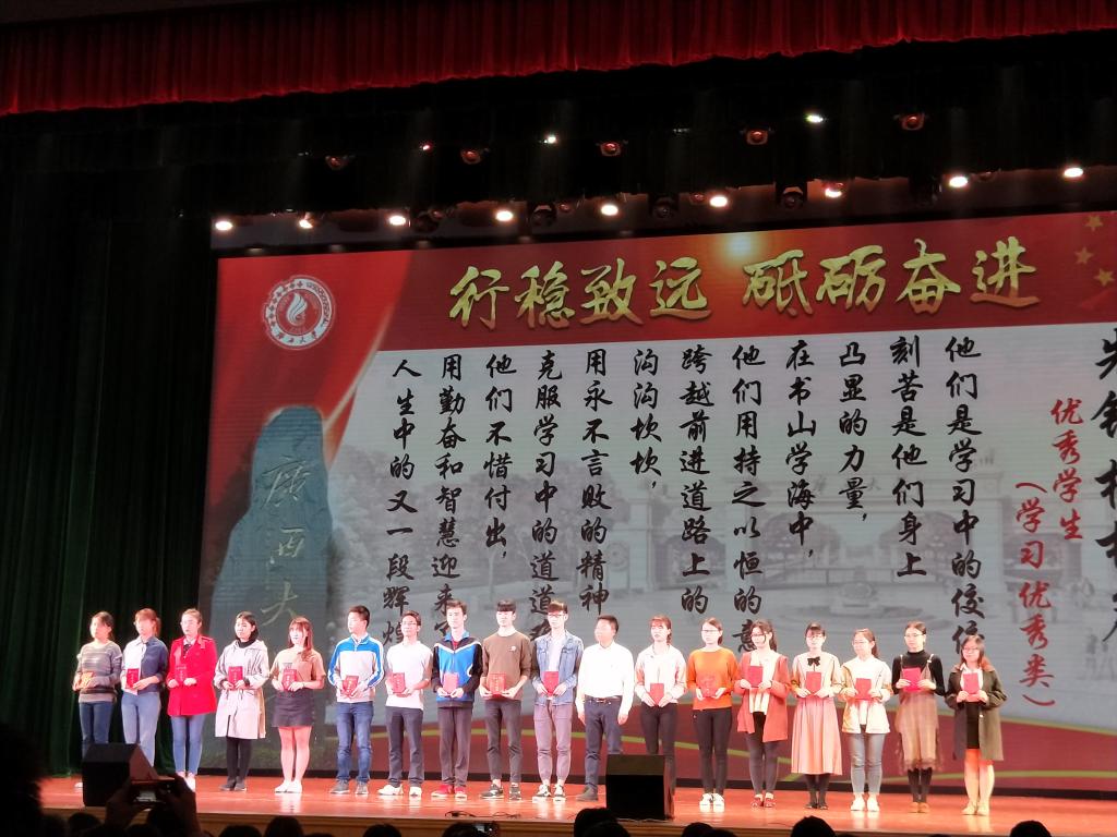 随后,第一轮颁奖开始进行。在颁布的众多奖项中,公管学院尽展风貌,一举拿下课外体育锻炼达人、优秀学生干部、学习优秀类优秀学生、学术科技类优秀学生、技能竞赛类优秀学生、国家奖学金(研究生)的奖项,并分别由熟女 学生代表麻海清、陈庆娟、沈庆铭等同学领取。
