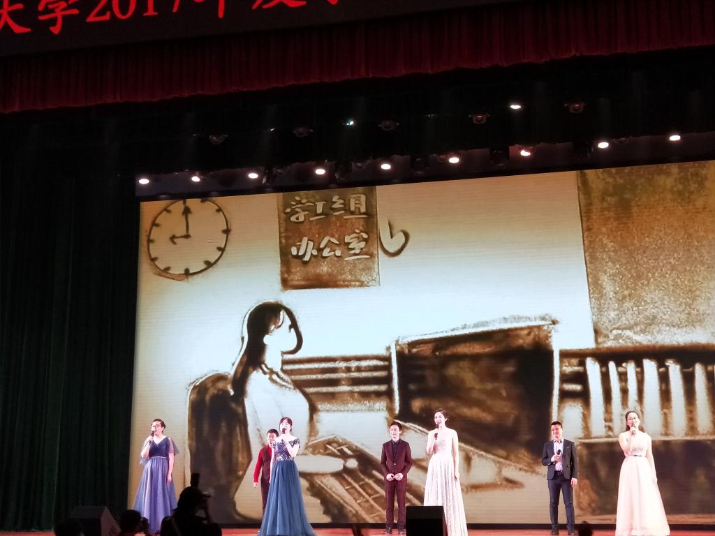 于大礼堂隆重召开2017年度学生工作表彰大会。晚会开场便进行了精彩的啦啦操表演,瞬间引燃全场,现场观众也尖叫、欢呼声不断。