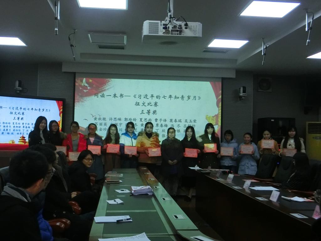 于1月9日下午16时在学院415教室举行“同读一本书”——《习近平的七年知青岁月》学习分享会暨颁奖仪式。公管学院黄文静老师、各班团支书、团委委员以及获奖的同学参加了此次会议。