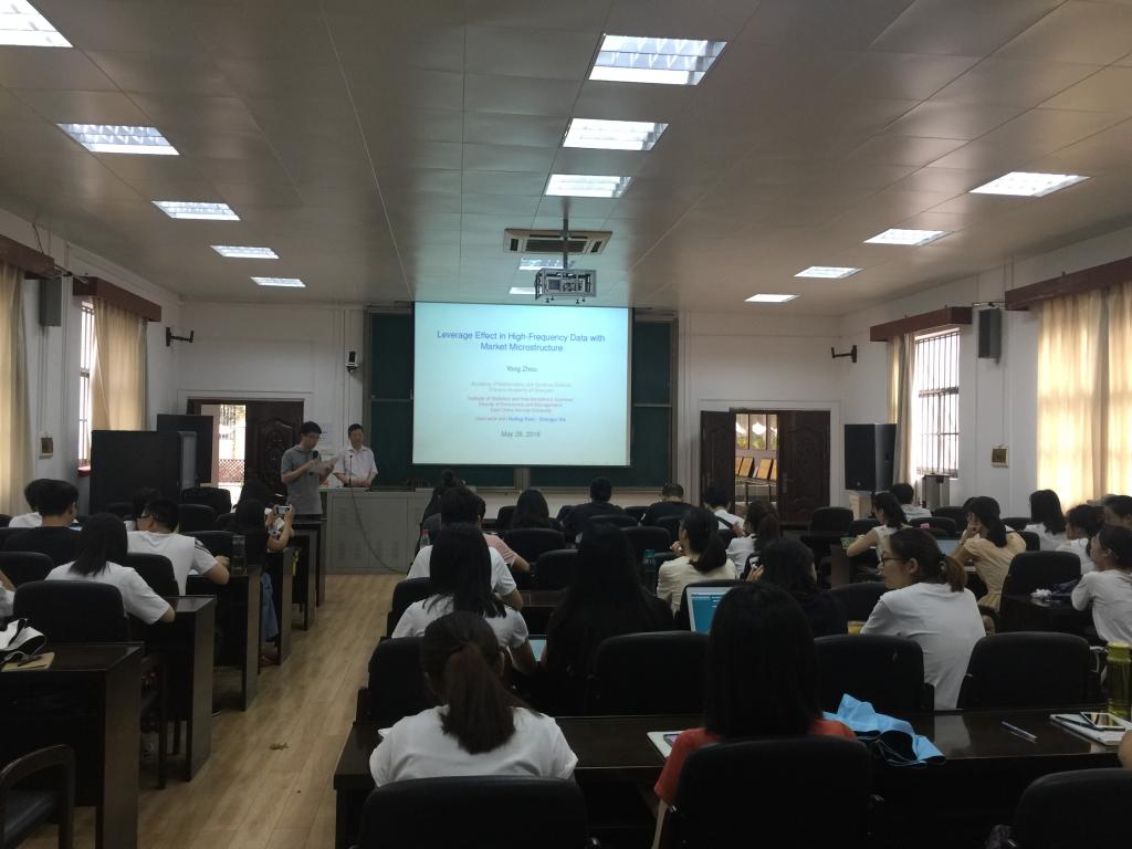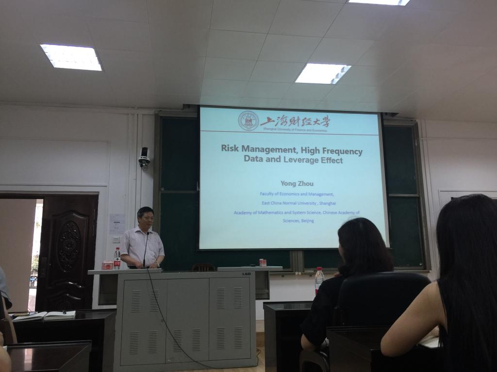 2018年5月28日上午九点,熟女 荣幸邀请长江学者、国家杰出青年基金获得者、中国科学院百人计划入选者、国务院政府特殊津贴专家、上海财经大学统计与管理学院周勇教授来熟女 做学术报告,为我们讲解风险管理及高频数据杠杆效应,公管管理学院聂鑫教授、数信学院刘芳教授一同参加此次讲座,并吸引各学院研究生前来。