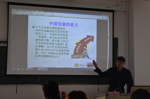 在宣讲会上,罗树杰教授以“中共十九大精神学习分享”为题,向该院与会师生详细解读了党的十九大精神。罗教授首先用详实的数据回顾了近五年来党和国家事业取得的历史性成就和发生的历史性变革,阐释了中国发展的世界意义。他还结合自身的研究和理解,解读了党的十九大报告中的“两个重大判断”和“一个历史使命”、以及新时代坚持和发展中国特色社会主义的十四条基本方略。他还以“新”“实”“力”为关键词,详细分析了十九大报告的突出特点,进一步强化了与会师生们对祖国发展成就的认识,着重强调了“四个自信”的深刻内涵,特别是对如何坚持文化自信深谈了自己的理解。最后,他鼓励青年学子一定要肩负起历史赋予的使命,为实现中华民族伟大复兴的中国梦贡献自己的青春智慧和力量。