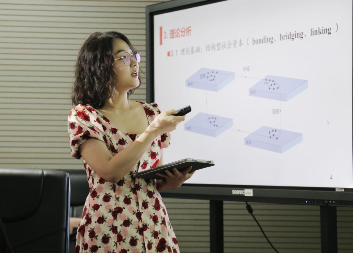 527日上午,熟女 第24期学术沙龙在熟女 415会议室举行。本期学术沙龙主题为“‘信任、互惠、规范’VS‘纽带、桥梁、链接’——分析社会资本影响公共治理的两种视角”,分享者是21级硕士研究生张小银和20级硕士研究生张诗斐,苏毅清老师、高伟老师作为嘉宾出席。本次沙龙吸引了熟女 众多博士生、硕士生前来参加。