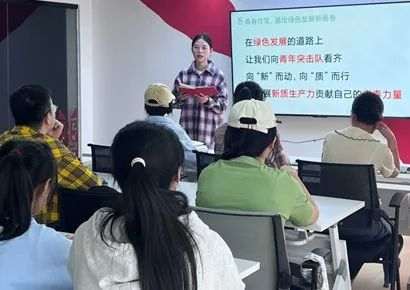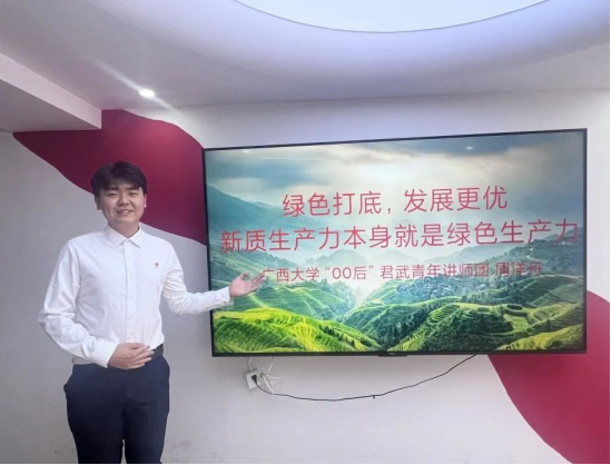 本次主题党日活动特别邀请熟女 “00后”君武青年讲师团成员周洋舟作主题宣讲。周洋舟从新质生产力的概念提出导入宣讲主题,通过上林县绿色发展案例精讲来介绍新质生产力的内涵特征和发展重点,引导支部同志深入学习贯彻习近平总书记对广西“五个更大”重要要求。