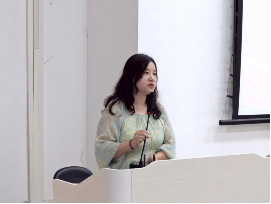 接下来,第八届党建会副主任王瑞贤代表发言。王瑞贤全面总结了学生党建会2023—2024年度的工作成果。她提到,党建会通过组织党员培训、支部例会等活动,有效提升了党员素质,显著提高了党组织凝聚力,并坦诚地指出了党建会工作中培训内容和形式的丰富性、支部例会的组织严谨性等方面存在的不足。此外,王瑞贤也对新一届党建会提出了以下建议:我们要继续发扬优良传统,不断创新工作方法,为学院发展贡献更大力量。