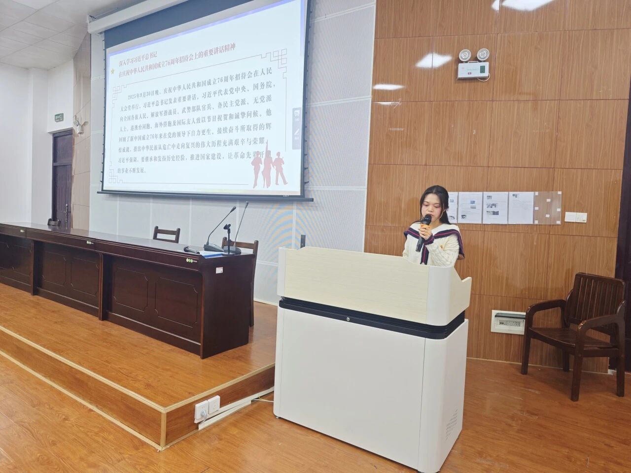 活动伊始,支部书记吴宁静同志带领全体人员集中学习了习近平总书记近期系列重要讲话、重要文章及重要回信精神。学习内容涵盖党的二十届四中全会精神、庆祝中华人民共和国成立76周年招待会讲话精神、在新疆考察时的重要讲话精神,以及给2025世界智能产业博览会、全国特岗教师代表和天津大学师生的重要回信精神等。她强调,作为公共管理专业的青年党员,未来将投身公共管理领域,更应该以习近平总书记重要讲话精神为行动指南,把使命担当融入服务社会和群众中。