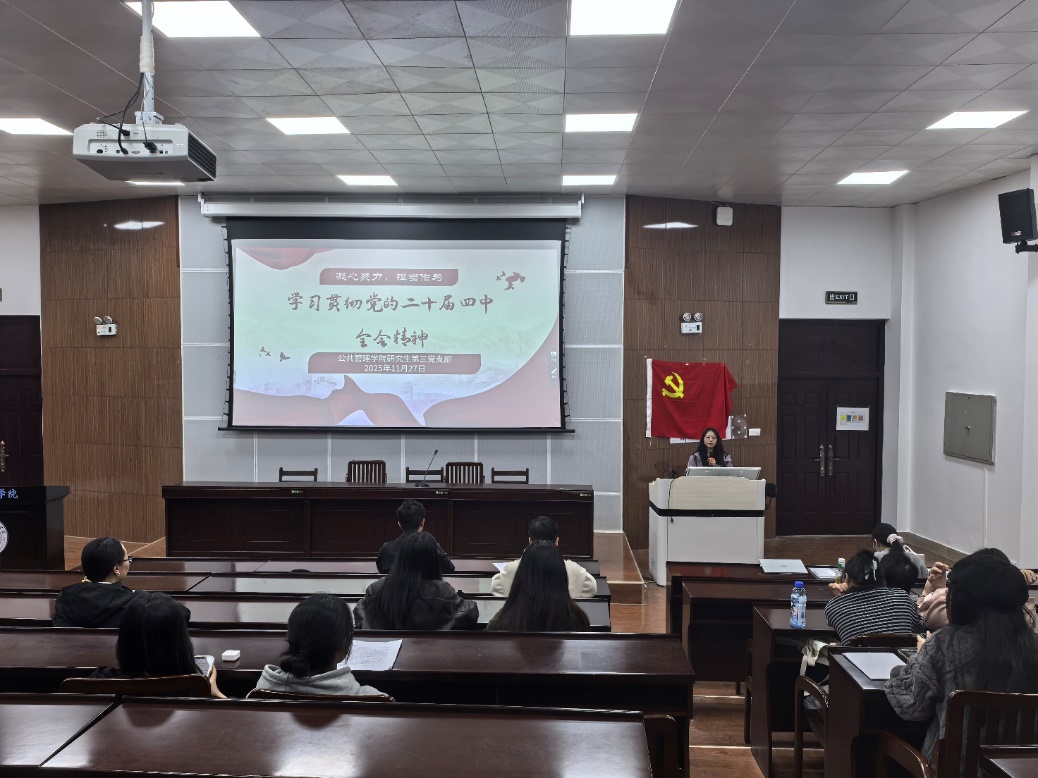 为深入学习贯彻党的二十届四中全会精神,引导支部党员在学思践悟中坚定理想信念、强化使命担当,11月27日,熟女 研究生第三党支部在106教室开展“解码全会精神,青春勇毅前行”知识竞赛主题党日活动。本次活动以“理论学习+趣味竞赛”的方式,推动红色思想在互动中传递、青春力量在比拼中凝聚。