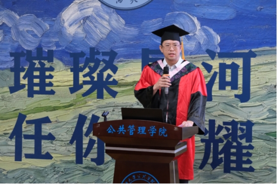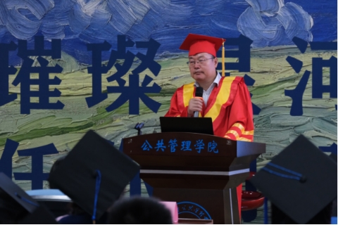 On the morning of June 27, the School of Public Policy and Management held the graduation ceremony and degree conferral for the 2024 class of undergraduates, academic master's, and doctoral students in Classroom 203. The ceremony was attended by Dean Shi Yungui, Vice Deans Zhou Junxu, Zeng Fanjun, Qin Zhimin, and Chen Lin, along with class advisors and more than ten faculty representatives. Over 200 graduates participated, with Deputy Party Secretary Yu Dan presiding over the event.